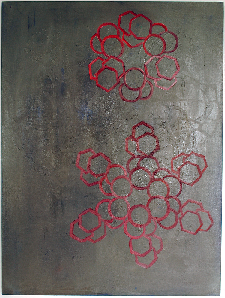 Abstraction of Beasts resumes this immutable synergy between process and product. The show title is from a chapter of Dragons of Eden—Carl Sagan’s epistle to the evolution of, among other things, man’s capacity for abstract thinking—whose influence throbs under the skin of the work. The abstraction here is literal to a certain degree, but it’s also evasive and open-ended as the deliberately misappropriated title also alludes to the Fauvist notion of the artist as a wild beast, as a primitive grappling to understand through the limits of his language.